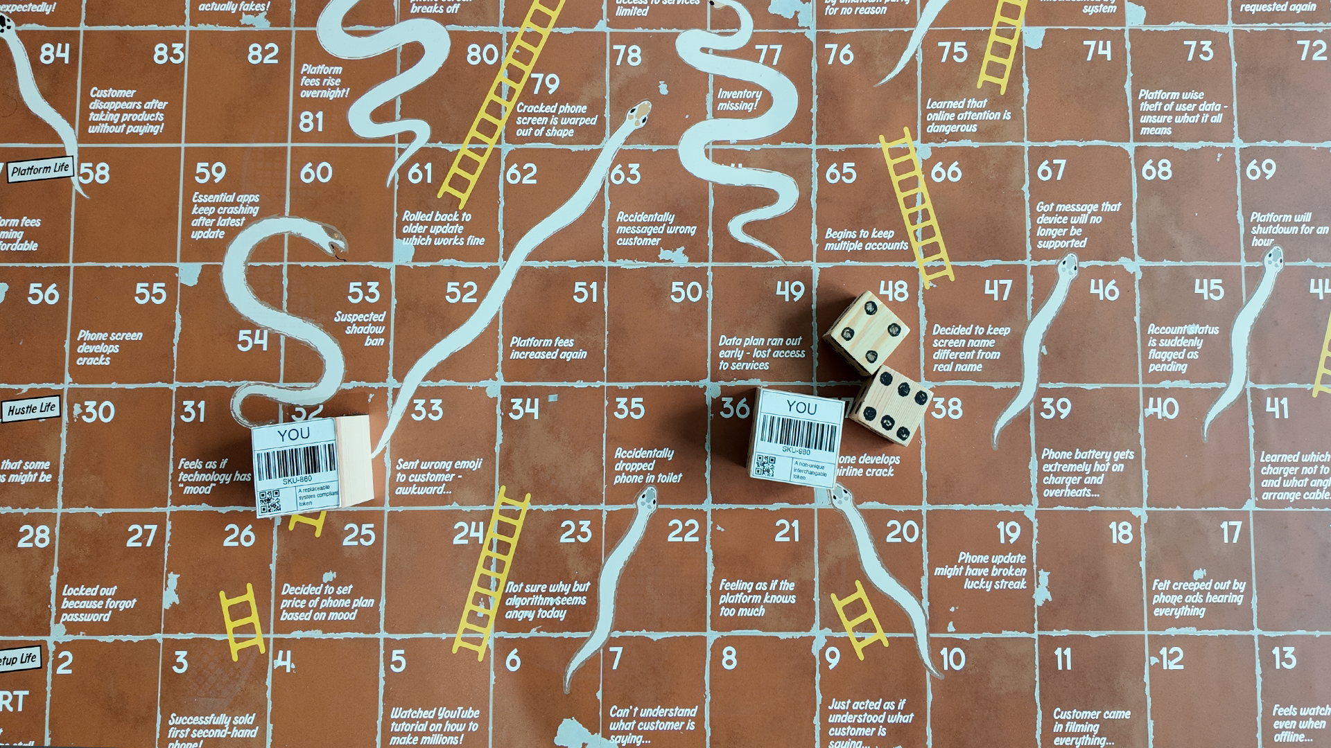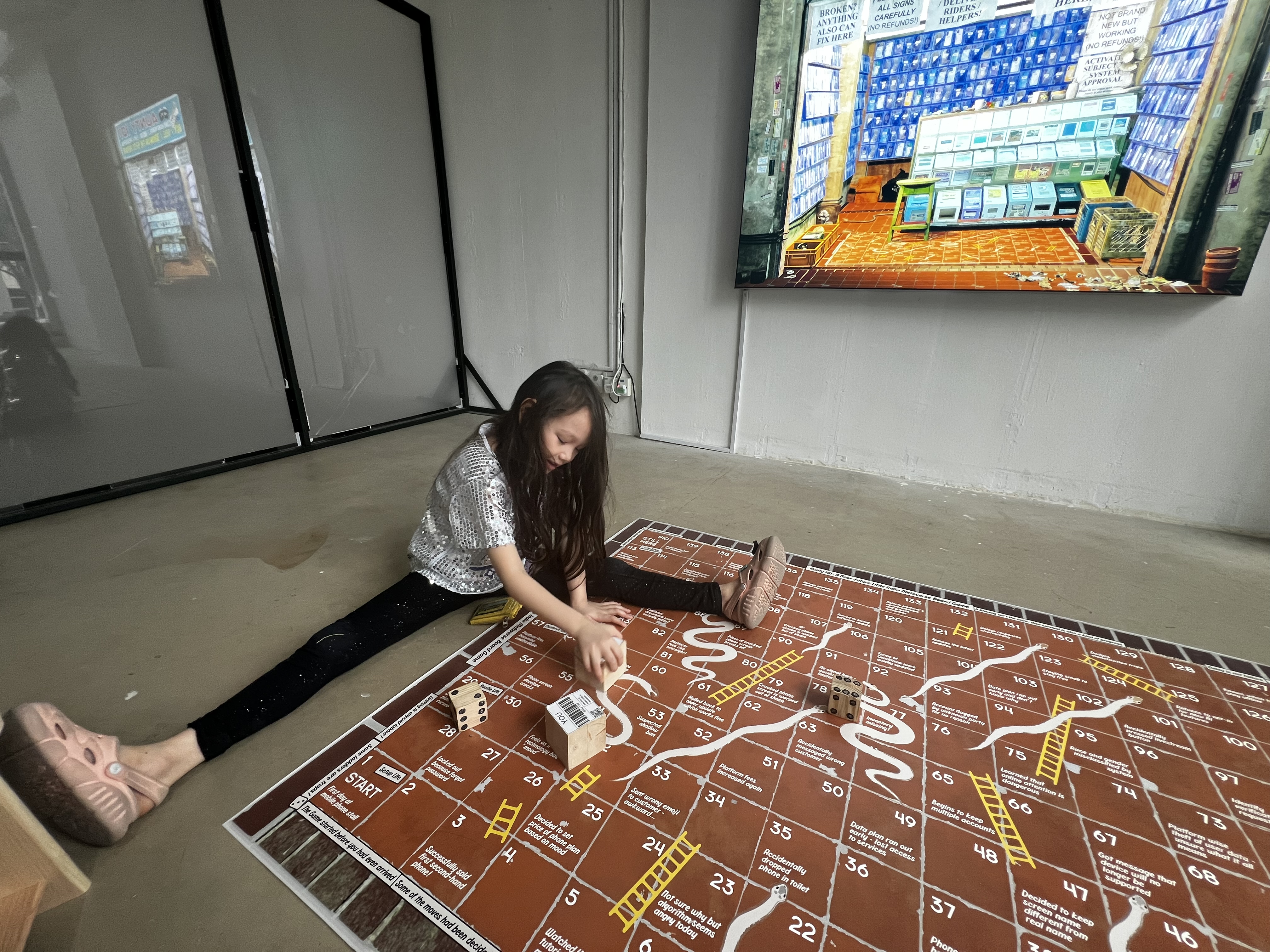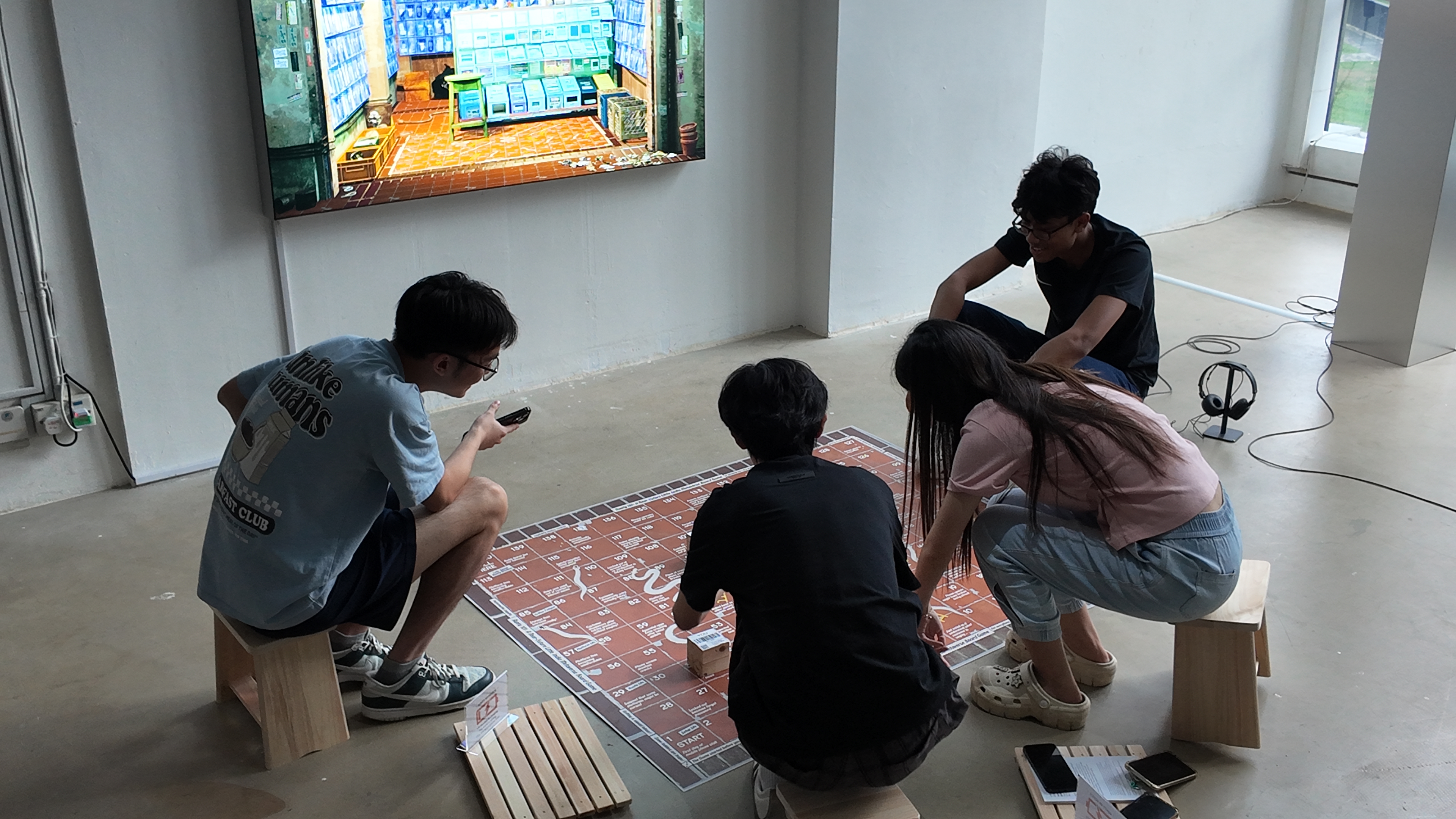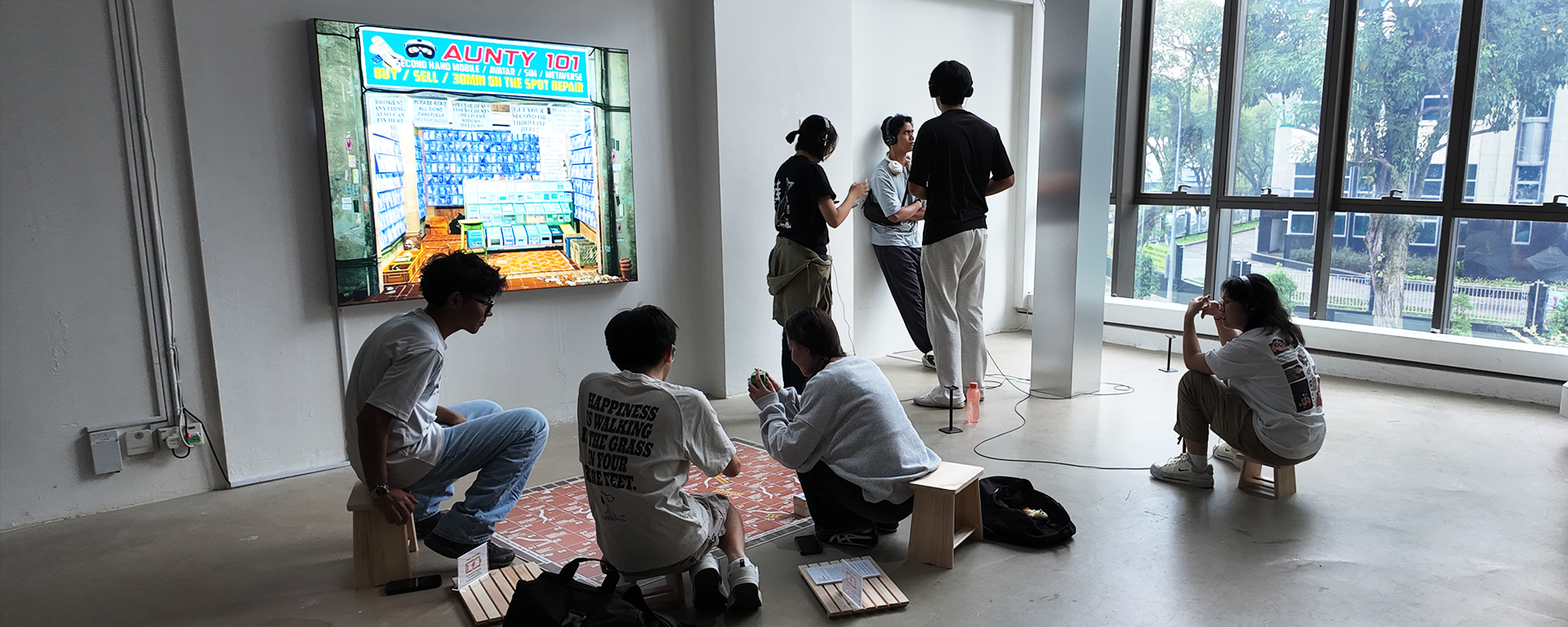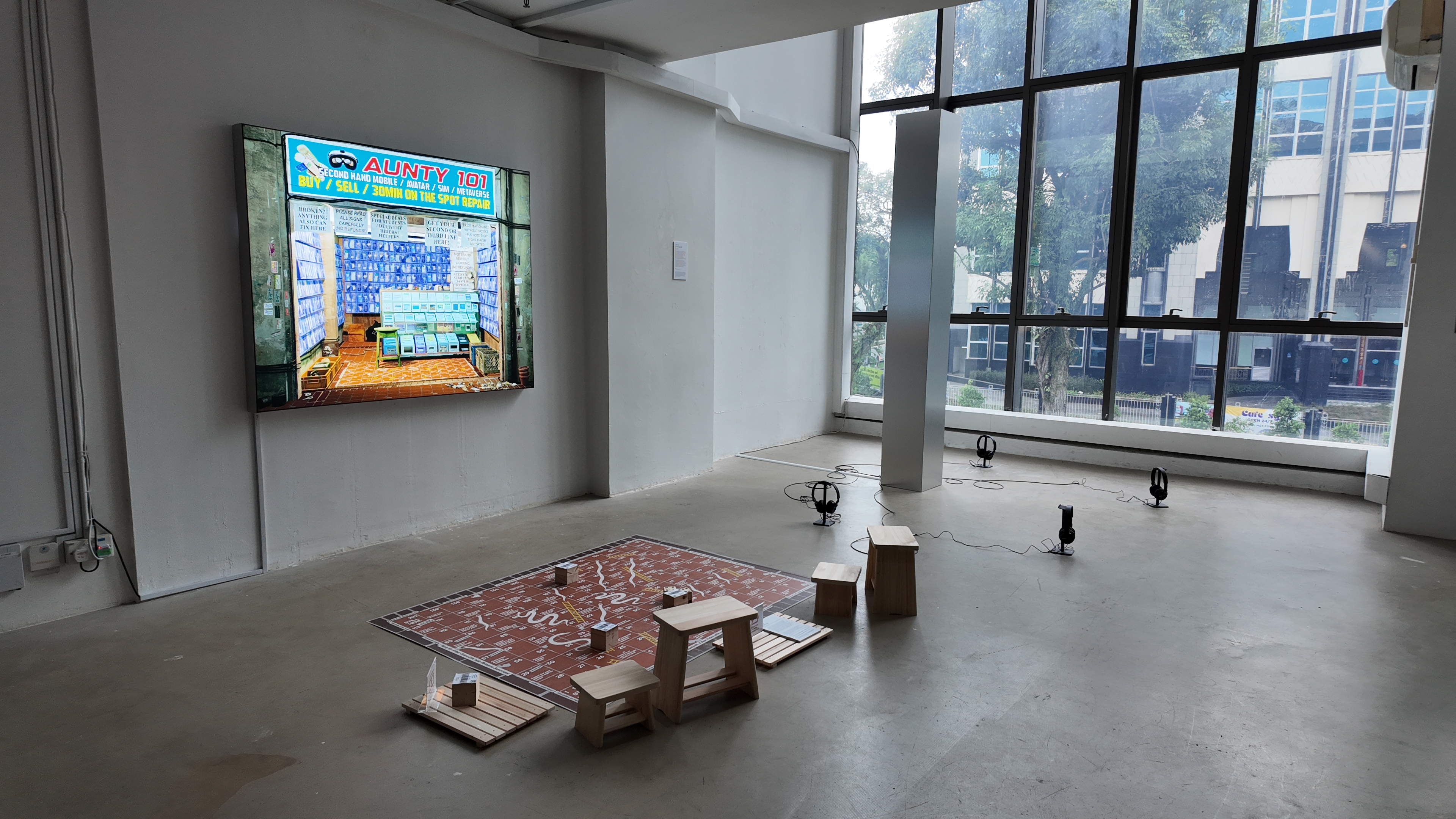 Aunty 101 is a zoom-in into a segment of a virtual world I have built called the Drift Alley—a speculative Southeast Asian cyberpunk back-alley world inspired by Little India in Singapore. The work was originally going to be a VR Game, but evolved into a board game that was about tech without having to have the tech in it. The Drift Alley is populated by precarious NPCs, side-hustlers, griefers, and micro-economies operating at the fringes of the metaverse: SideQuest HR firms, Auto-Fishing Shops, Loot Crate Pawnshops. Acting as a beginner’s guide to this unstable world, Aunty 101 is its oldest ghost, where she repairs misaligned limbs, haunted wallets, and leaky inventories while dispensing half-remembered wisdom. The work explores survival, care, and orientation within marginal digital futures.