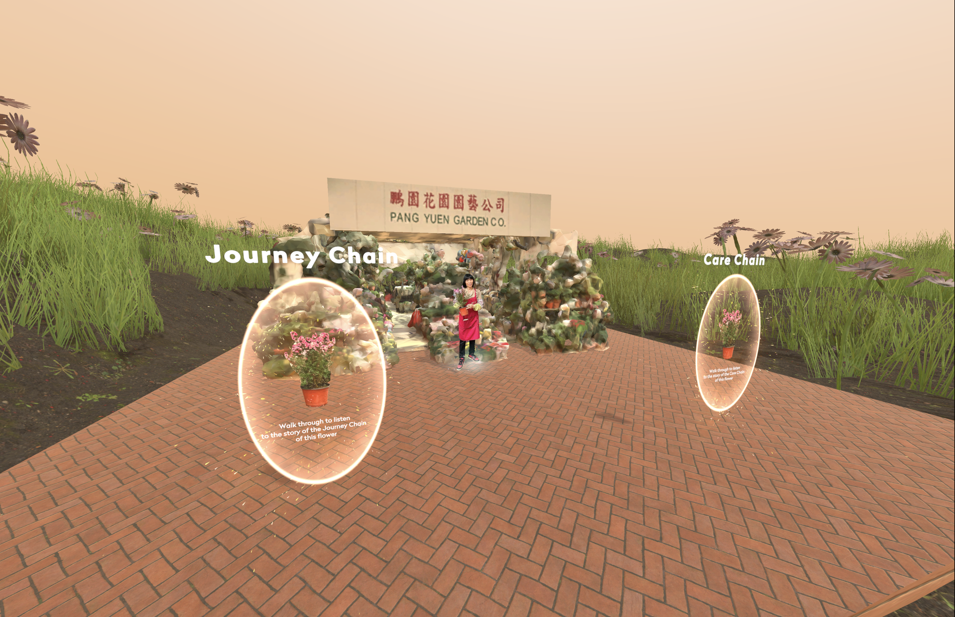 This project reimagines Hong Kong’s Prince Edward Flower Market as a participatory digital ecosystem, blending horticultural heritage with Web3 innovation. Inspired by Pang Yuen Garden Co., a family-run shop with deep roots in indigenous farming, the work explores hybrid commerce through three speculative frameworks: Handisk Farm (a phygital NFT plant-trading system), The Relational Flower Shop (a VR interface of care), and Courier (a sensor-based 3d-printed plant that bridges physical and virtual care). Centring owner Mrs. Tsang’s generational wisdom, the project challenges sterile metaverse narratives, proposing instead a living archive where tradition and technology co-evolve, preserving floral legacies while redefining future modes of exchange.