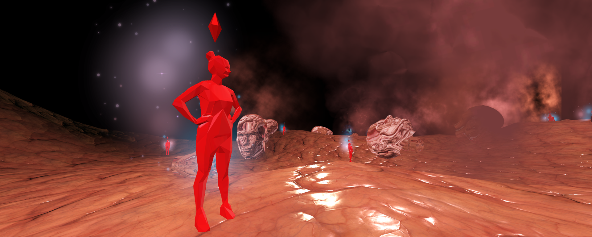 In response to Chng's work, Tang and Ding have created an experimental virtual reality performance. Using a game engine, audio software and an online virtual world platform, the audience will be brought on a journey across an imaginative terrain, where they will encounter uncanny faces, augmented voices and non-human ambiences.