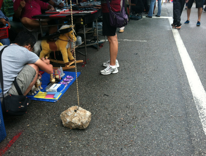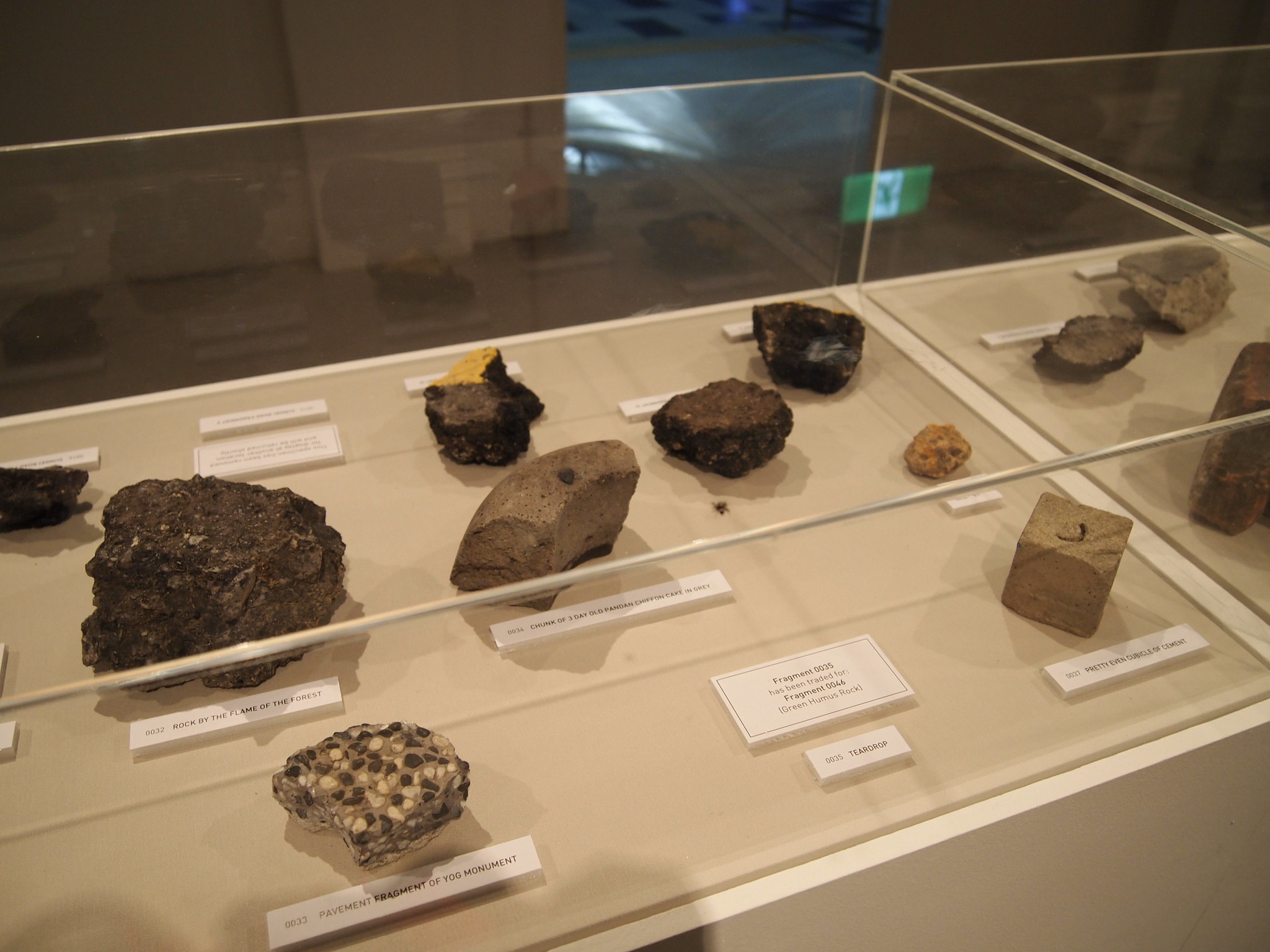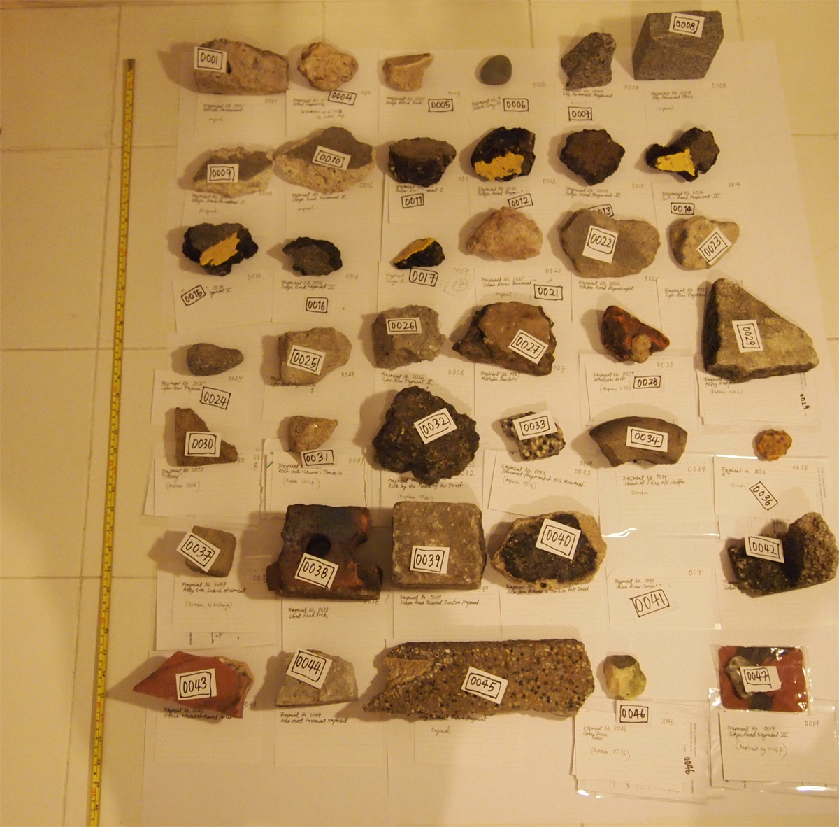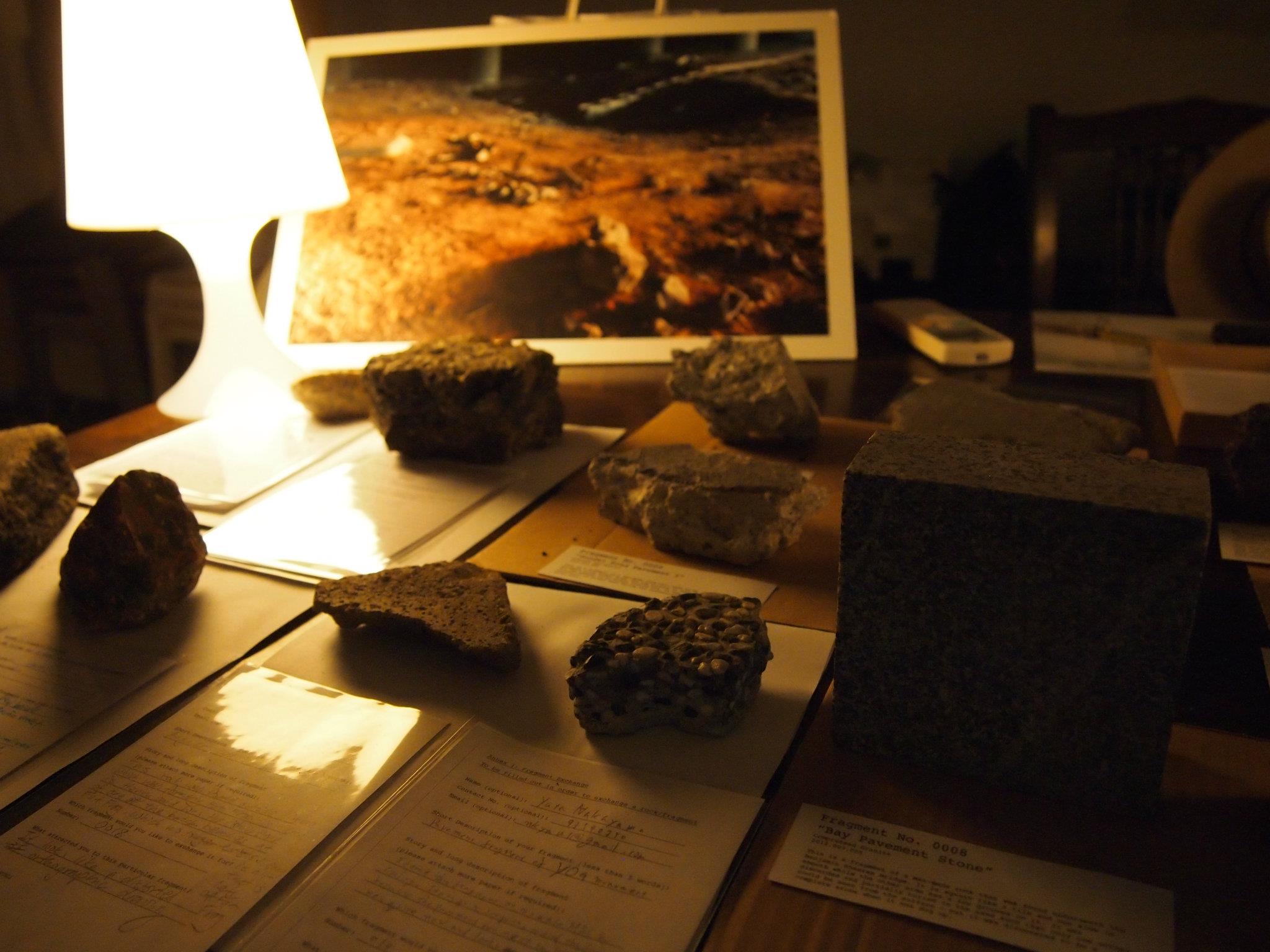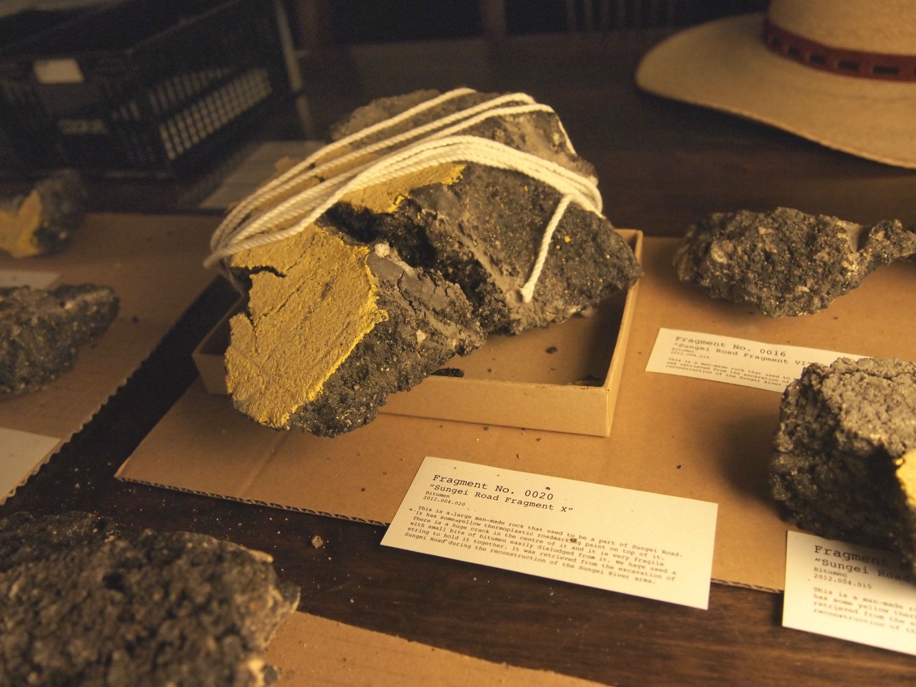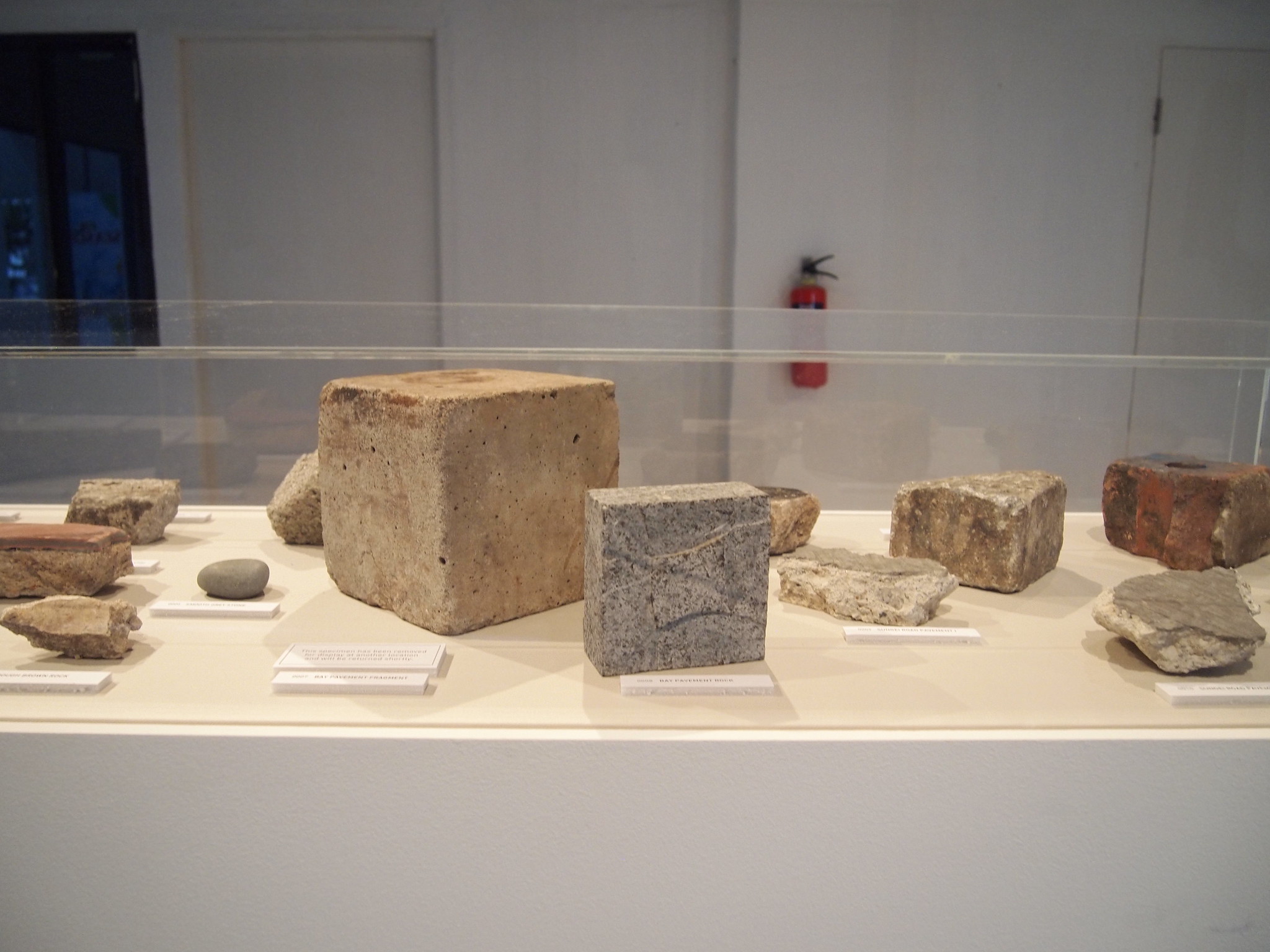 A series of 27 fragments were collected from excavation sites near Sungei Road, a popular open-air street market that has existed since the Japanese Occupation, but which looks set to be demolished in 2014. After the initial collection of artifacts, "A Public Exchange of Ethnographic Fragments" was conducted. Members of the public were invited to come in to see and touch the fragments, or even exchange rocks.