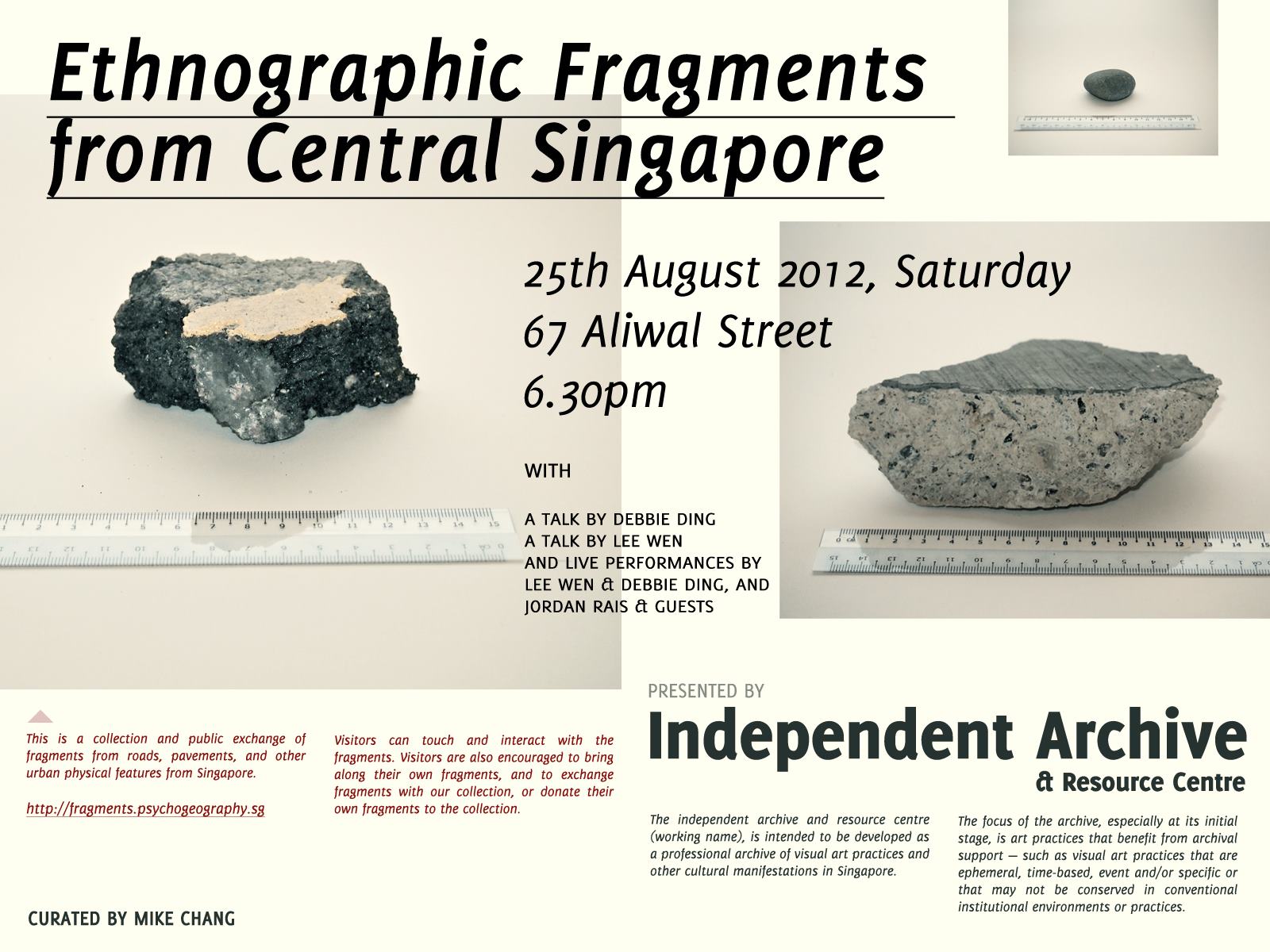 The objects that are examined in the process of an ethnographic study are also known as “ethnographic objects”. In some cases, some of the objects we want to study may be physically broken or too severely fragmented to be considered as whole or complete objects, so we have chosen to describe them as “ethnographic fragments”. Singapore is full of fragments, whether it be physical fragments like the rubble from construction, but also fragments of histories and narratives.