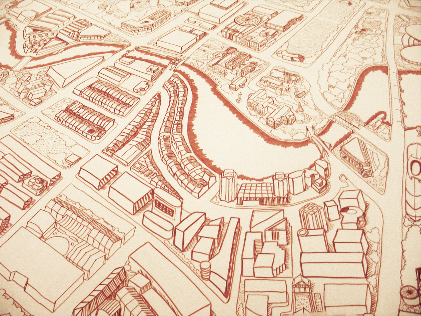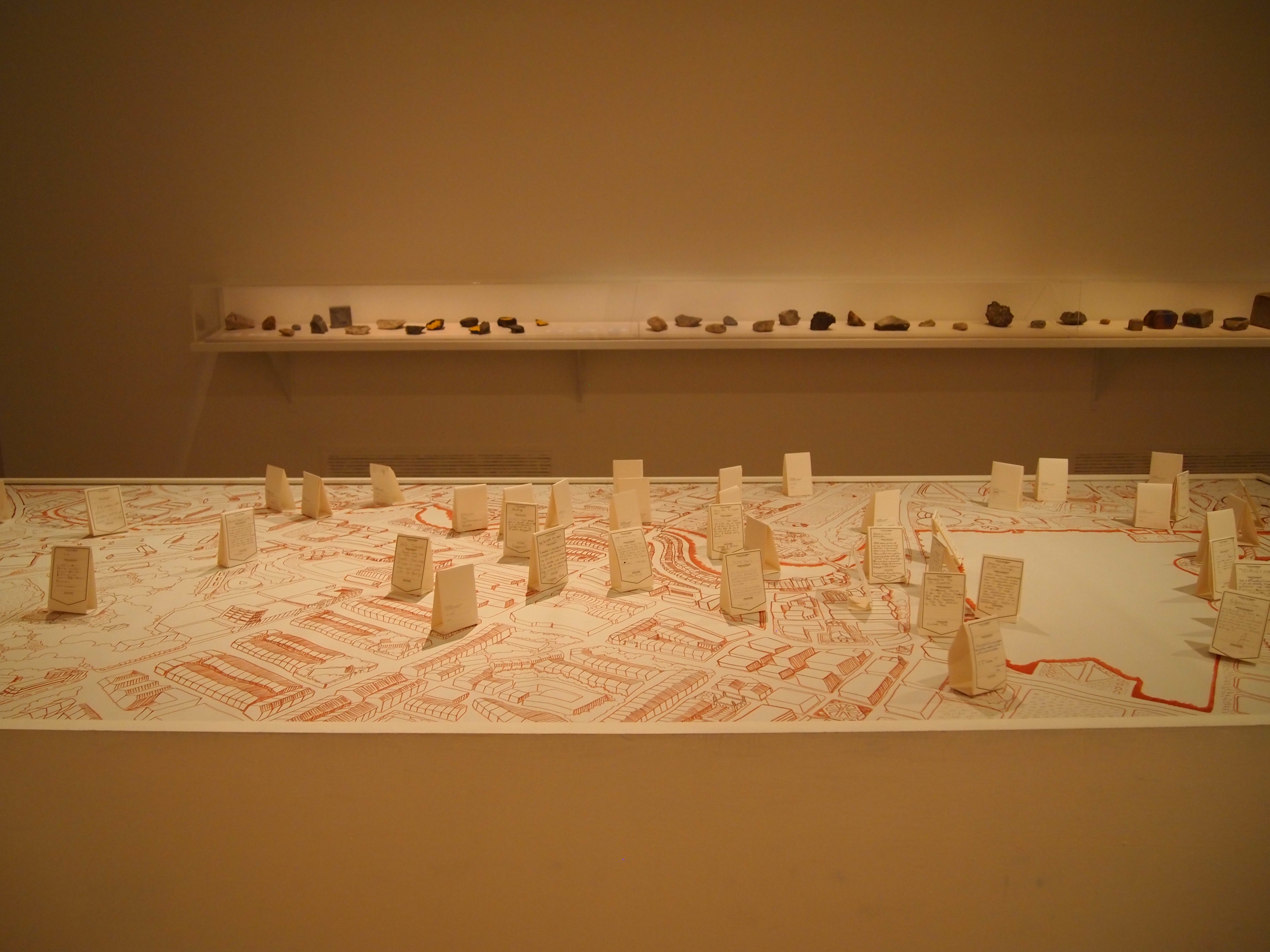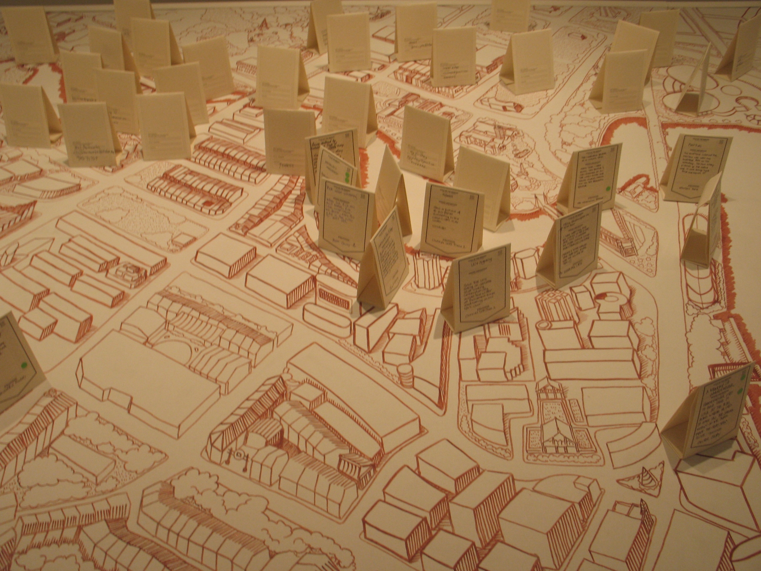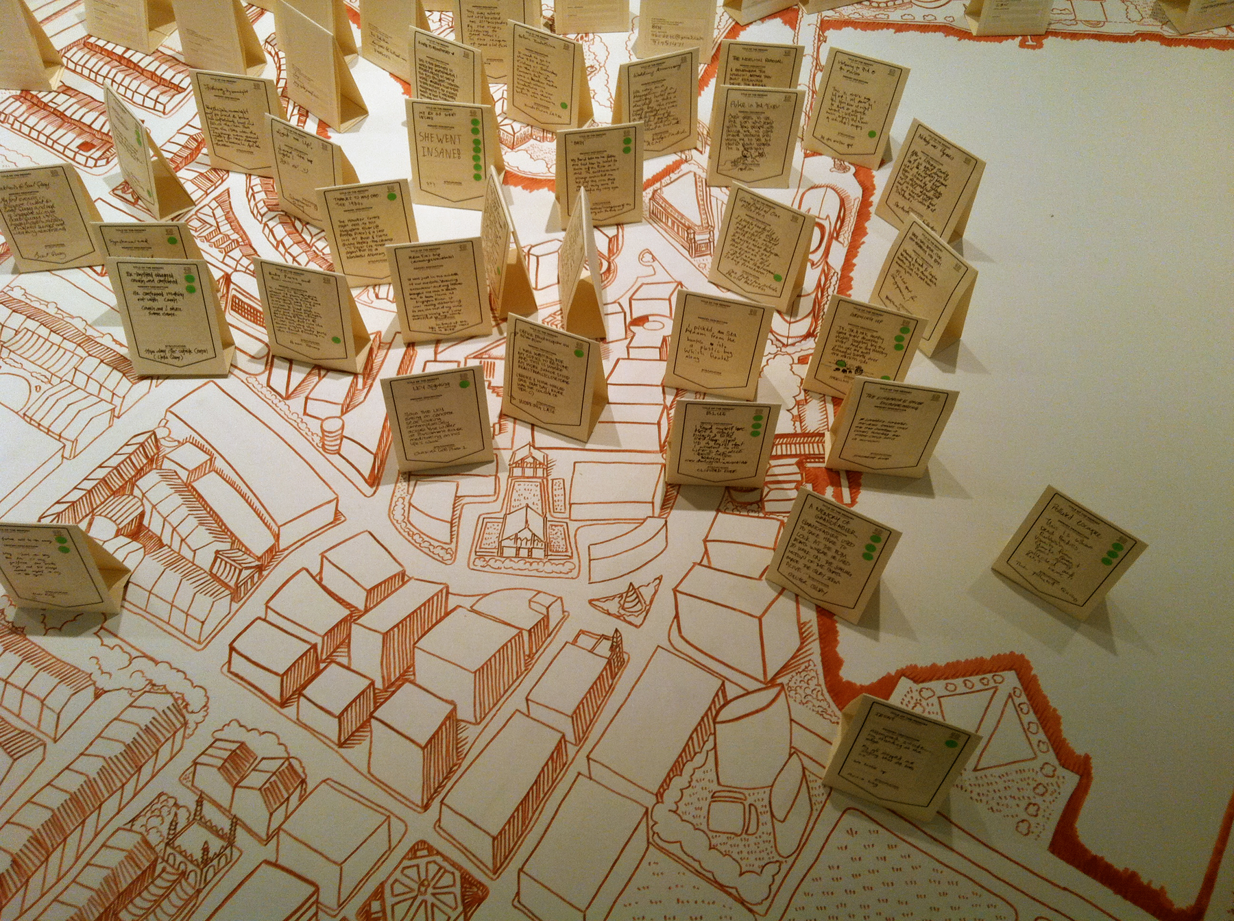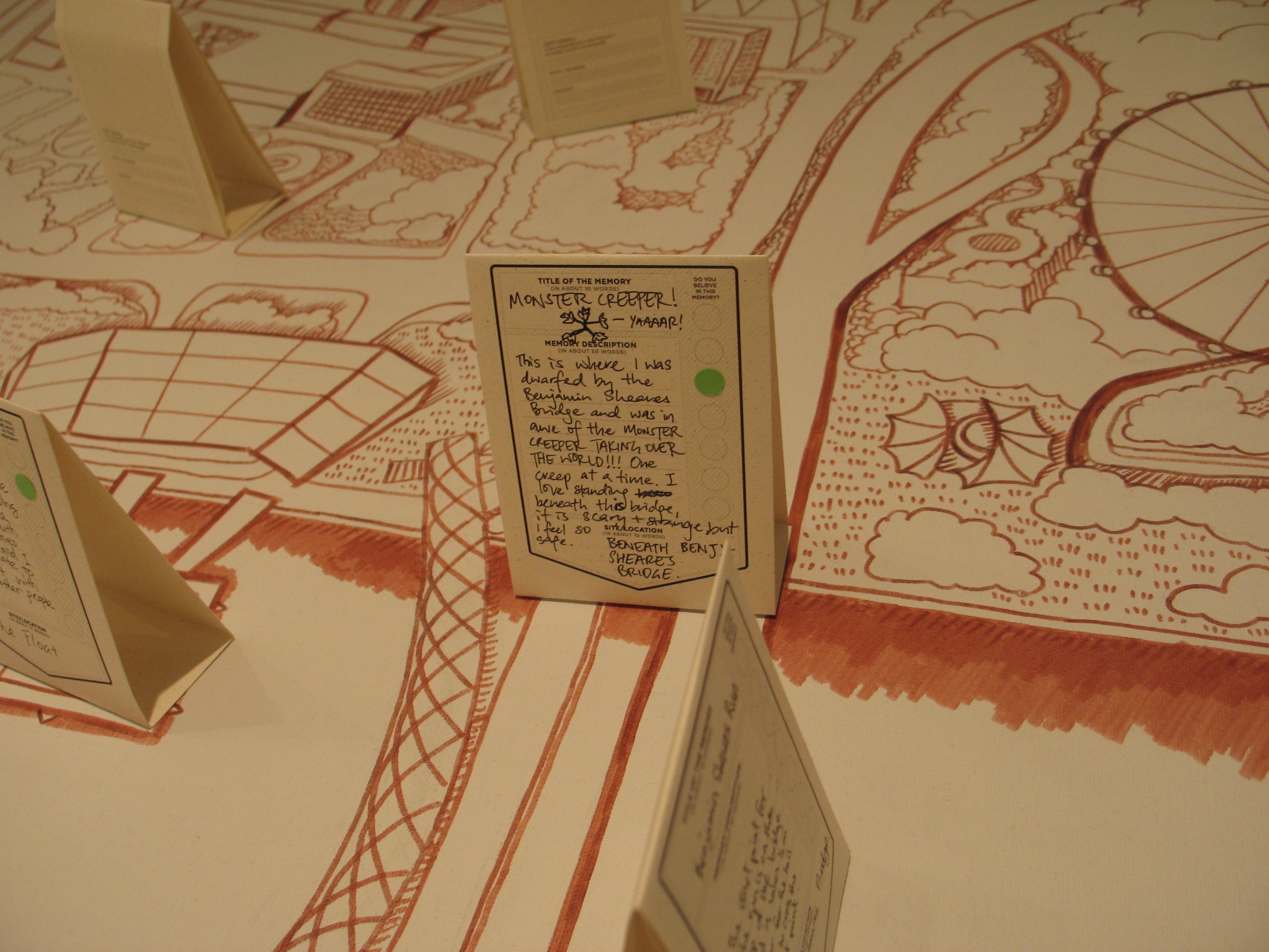 Here the River Lies is an interactive map installation of the Singapore River that requires the participation of the audience to complete the work. The audience is invited to contribute their memories of the Singapore River to a large hand-drawn map of the Singapore River, regardless of whether the memories are real, partially real, or imaginary.