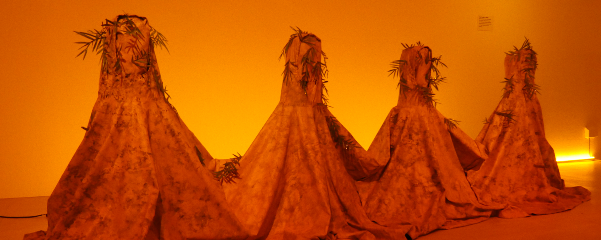 A sculptural work consisting of camouflage suits standing in the gallery; imagining a world in which there is a rule that allows people to remain on private gardens as long as they blend into the environment. The work responds to the increasing privatisation of public walkways, public spaces, and vantage points.