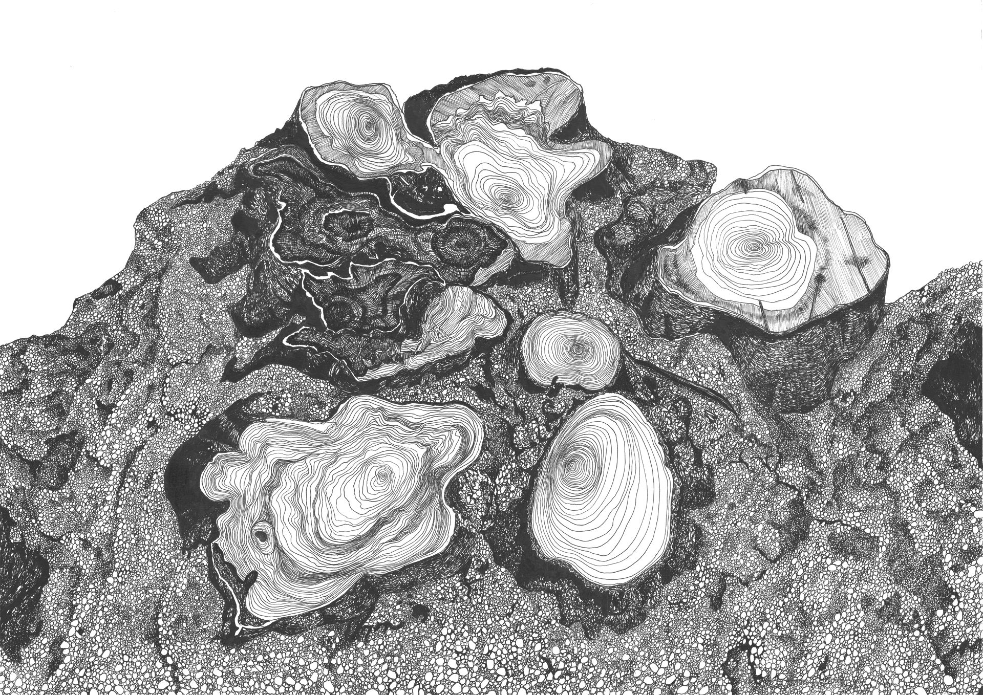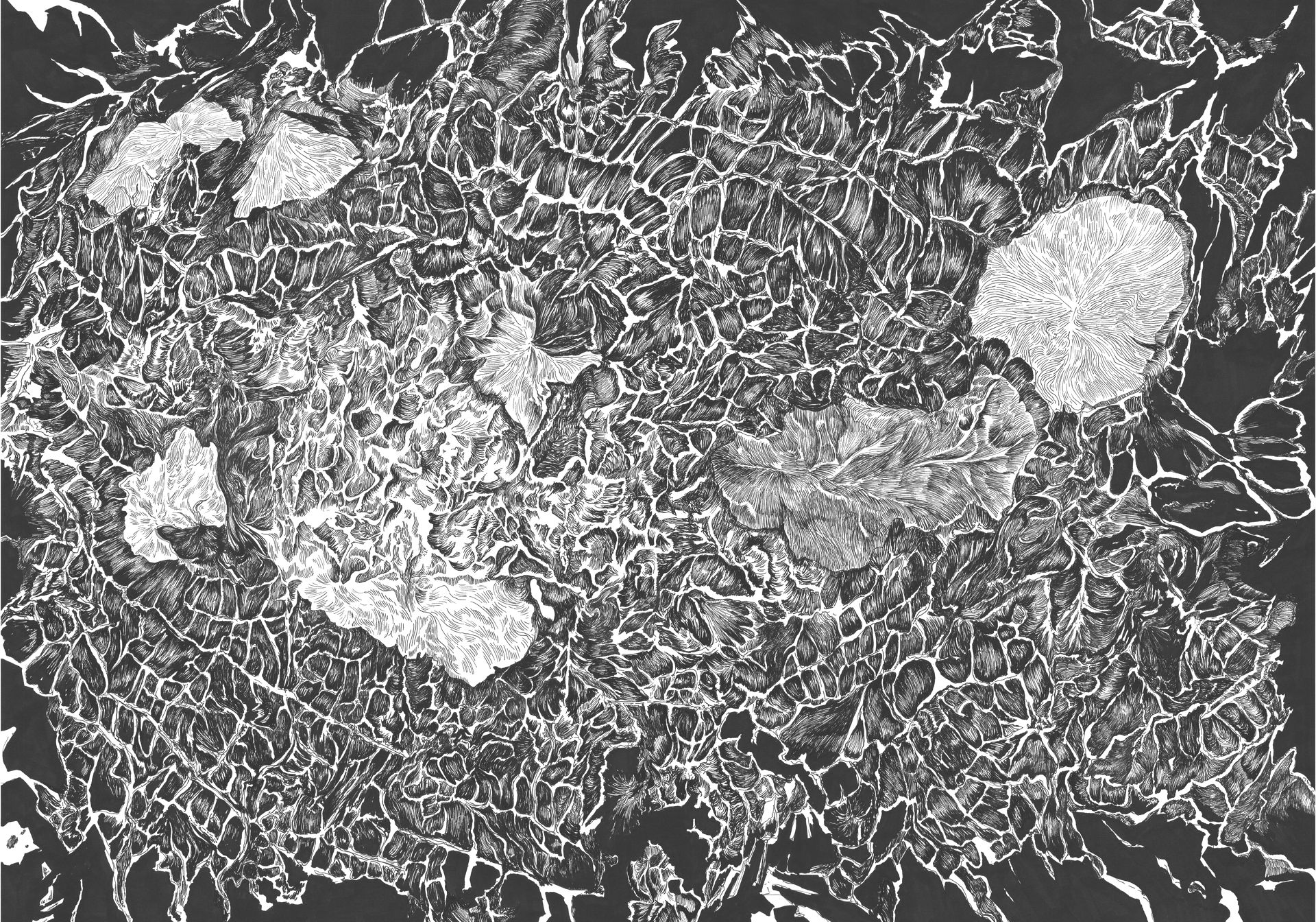 (2011, Cornwall)Some years ago, while living in London, I had spent time collecting and documenting my dreams in the form of maps, and a friend who grew up in the Cornish countryside had noted that all my dream maps had buildings in them, whereas he had dreams with wide open fields; dreams without buildings. It stood to figure that since I have only lived in cities all my life, with very little contact with any sort of countryside, I wouldn’t be very likely to have dreams without buildings in them unless I went out and saw more of the English countryside. Clutching for dear life to fistfuls of reedy grass and keeping my head down and close to the rocks as I climbed up the craggy coastline of Cornwall with city shoes, I frequently came face-to-face with the microscopic world of the bright yellow lichen that covers the distant corners of rocks on the southern most point of Britain. Thriving in places where nothing else was left except dry tundra, I also wondered if one day I would be able to survive living outside of the city.
