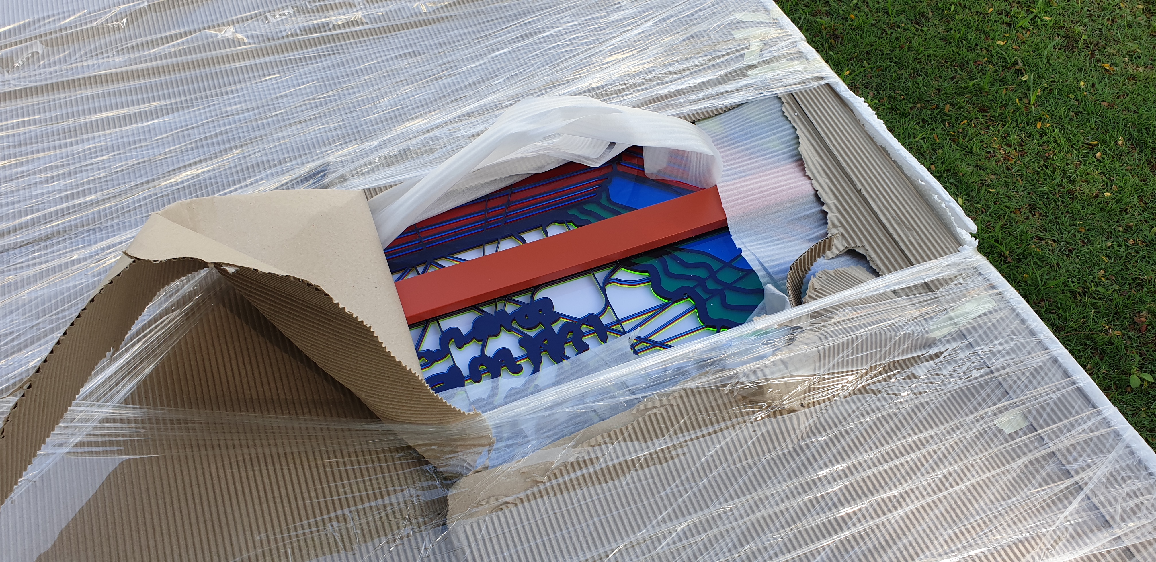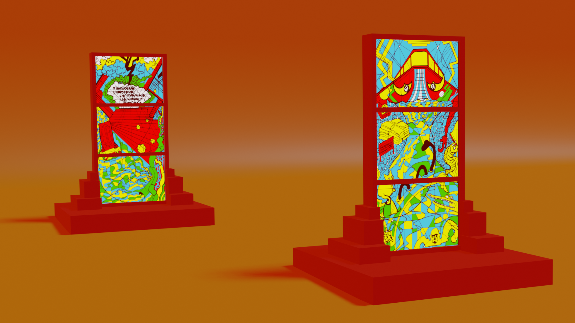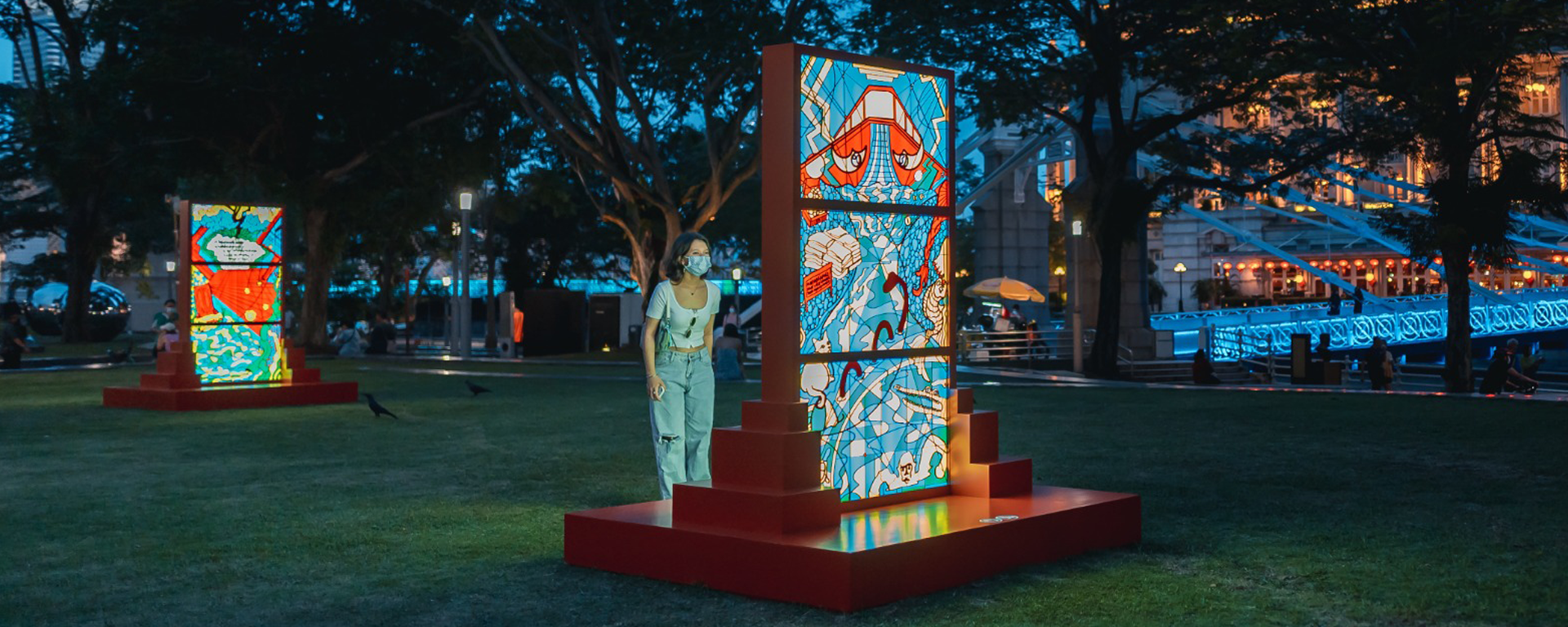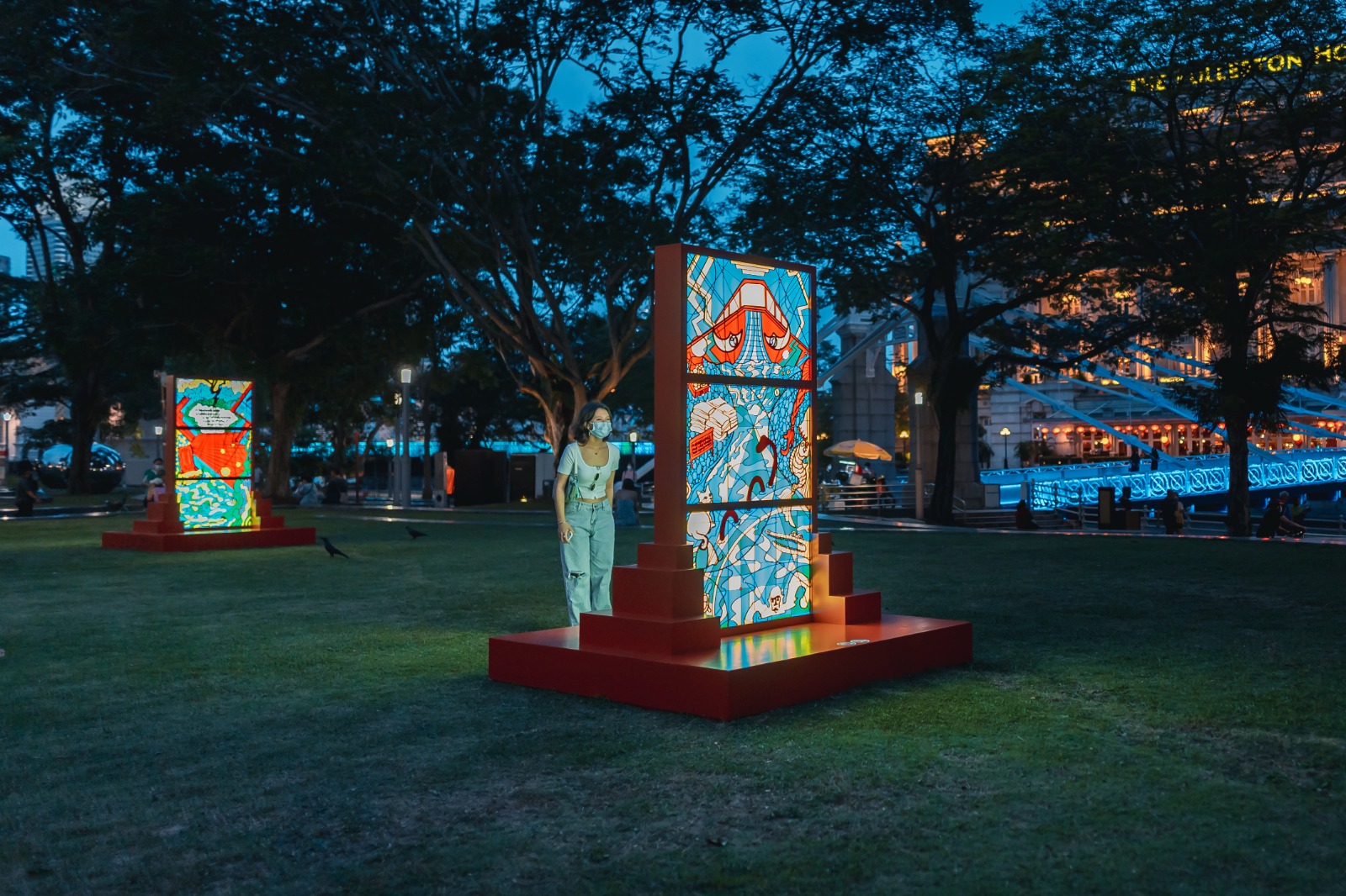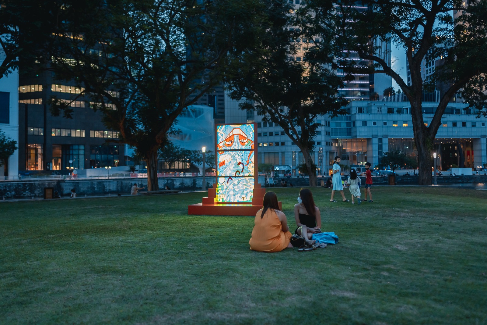 The work is a visual extension of my 2010 work. Two glowing “doorways” or portals stand on the lawn of the Asian Civilisations Museum, representing a view into alternate fantastical realities of the Singapore River, drawing on and reinterpreting the textual material collected from the work Here the River Lies.