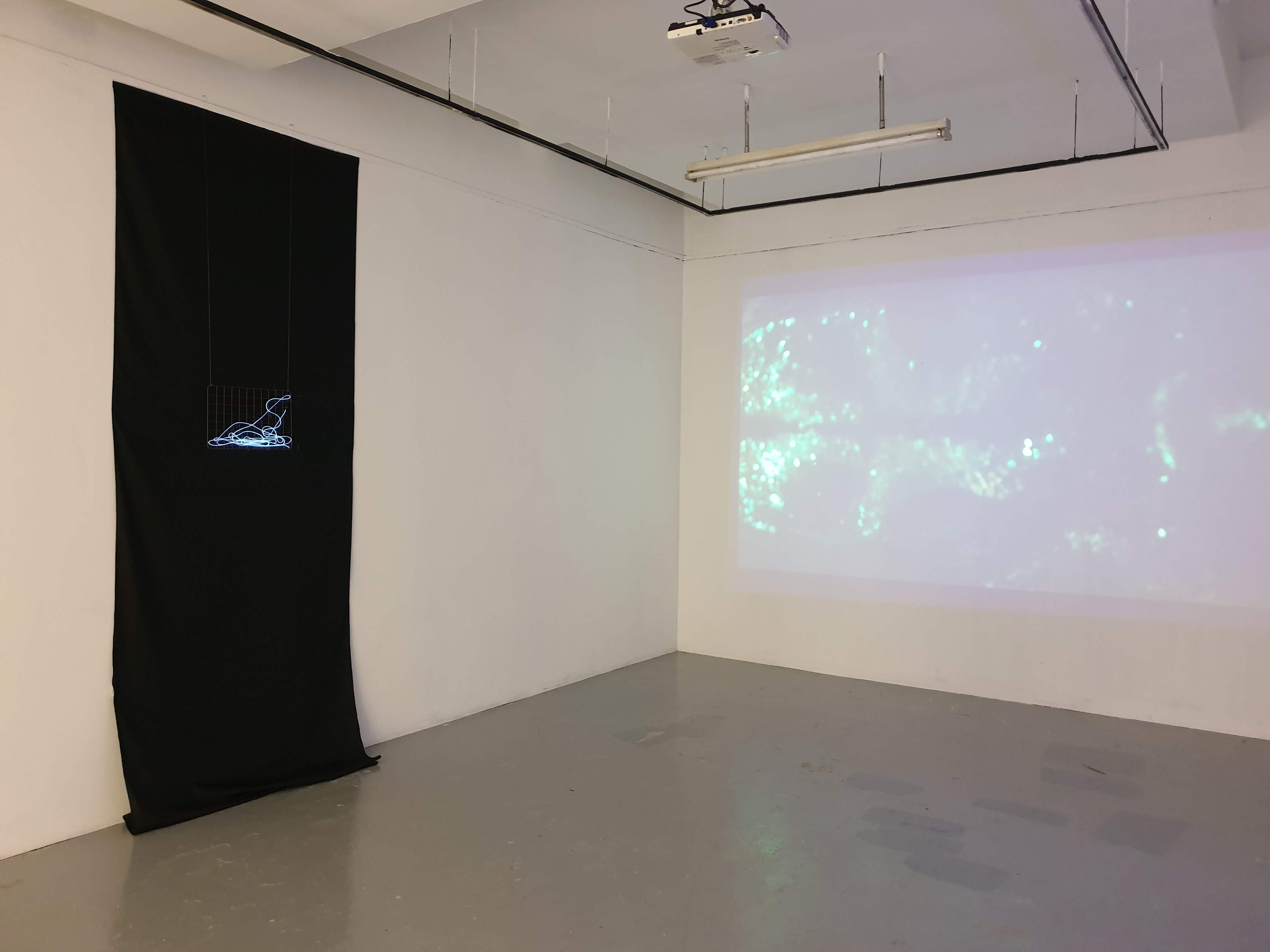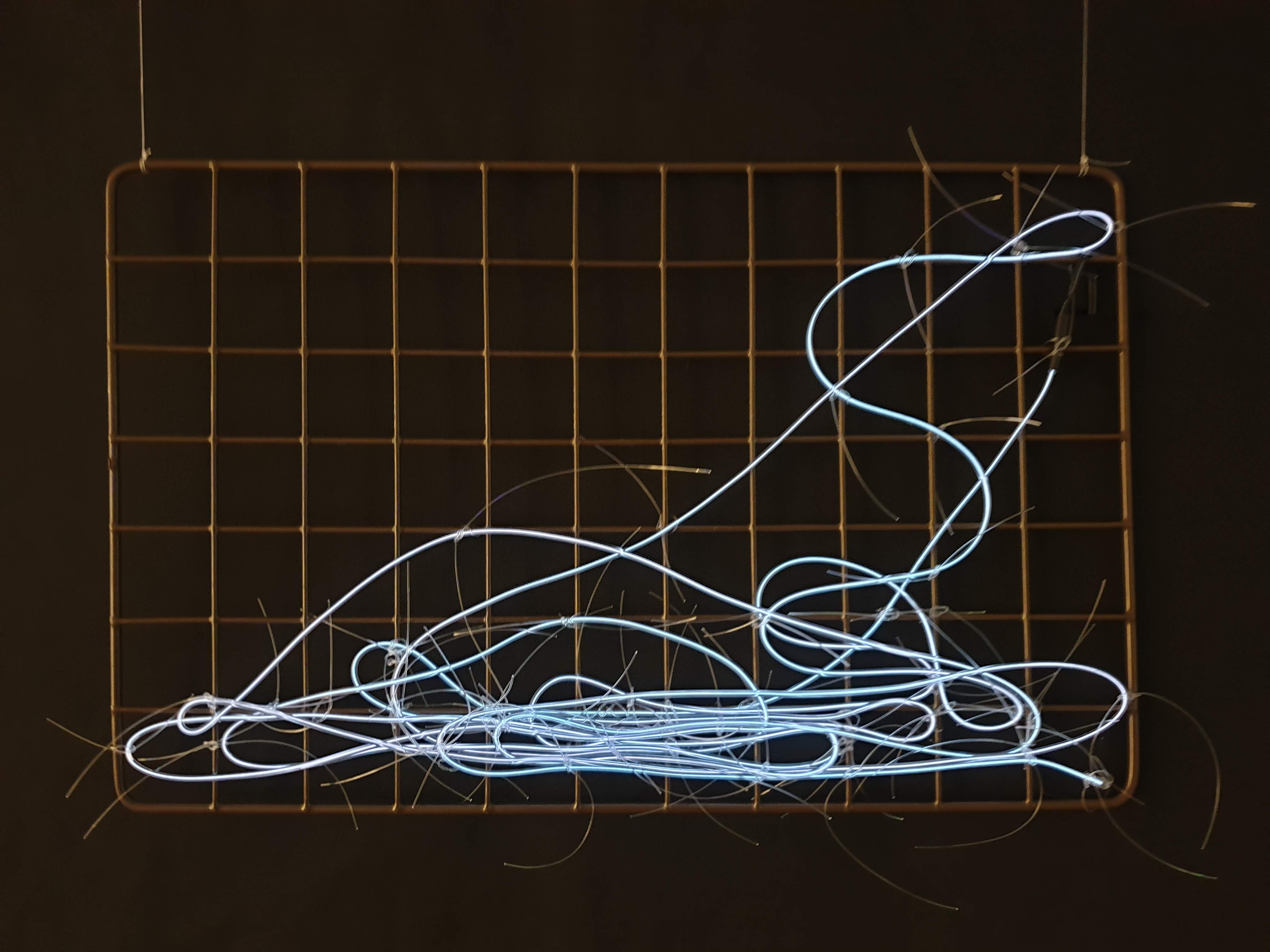 Schreckstoff is a substance found in the skins of fishes which when released into the water due to injury, serve as an alarm substance to warn other fishes of danger. I observed a video in which researchers recorded the movement of a fish which had detected schreckstoff in its waters and was exhibiting unusual fish activity that we interpret as fear in the fish. The fish’s path has been outlined as a form of mark-making.