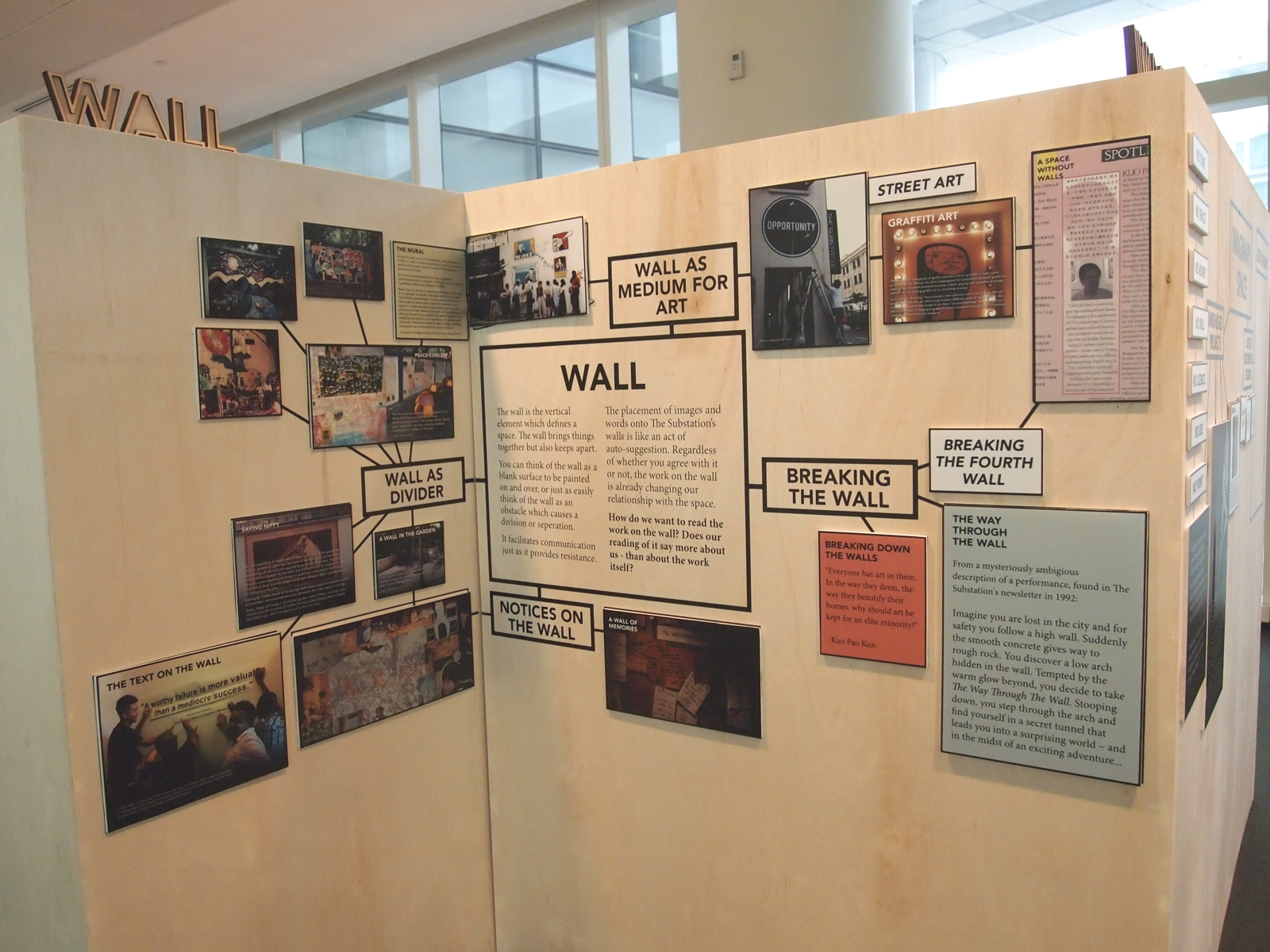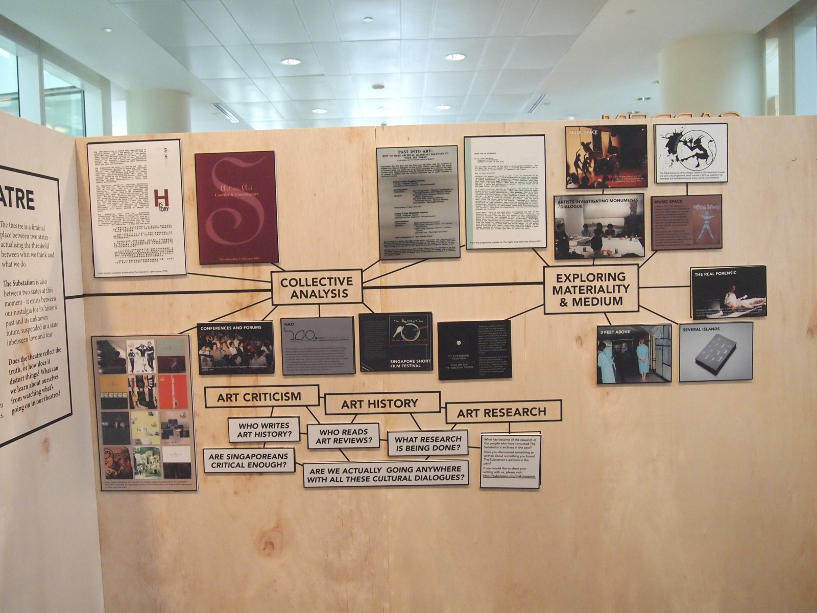 Making Space was an exhibition in 2015 about The Substation, its archives, and its role in contemporary art in Singapore. Since The Substation opened its doors on 16 September 1990, it has prided itself as a space for diversity, inclusiveness and experimentation. Many artists and people from all walks of life have used The Substation as a space for developing or presenting works in the visual arts, theatre, dance, music, and film - and as an active space for discussions, meetings, process, research, and experimentation. As a prominent institution of Singapore's contemporary art scene, it has seen a broad circulation of people and ideas from within its small space.