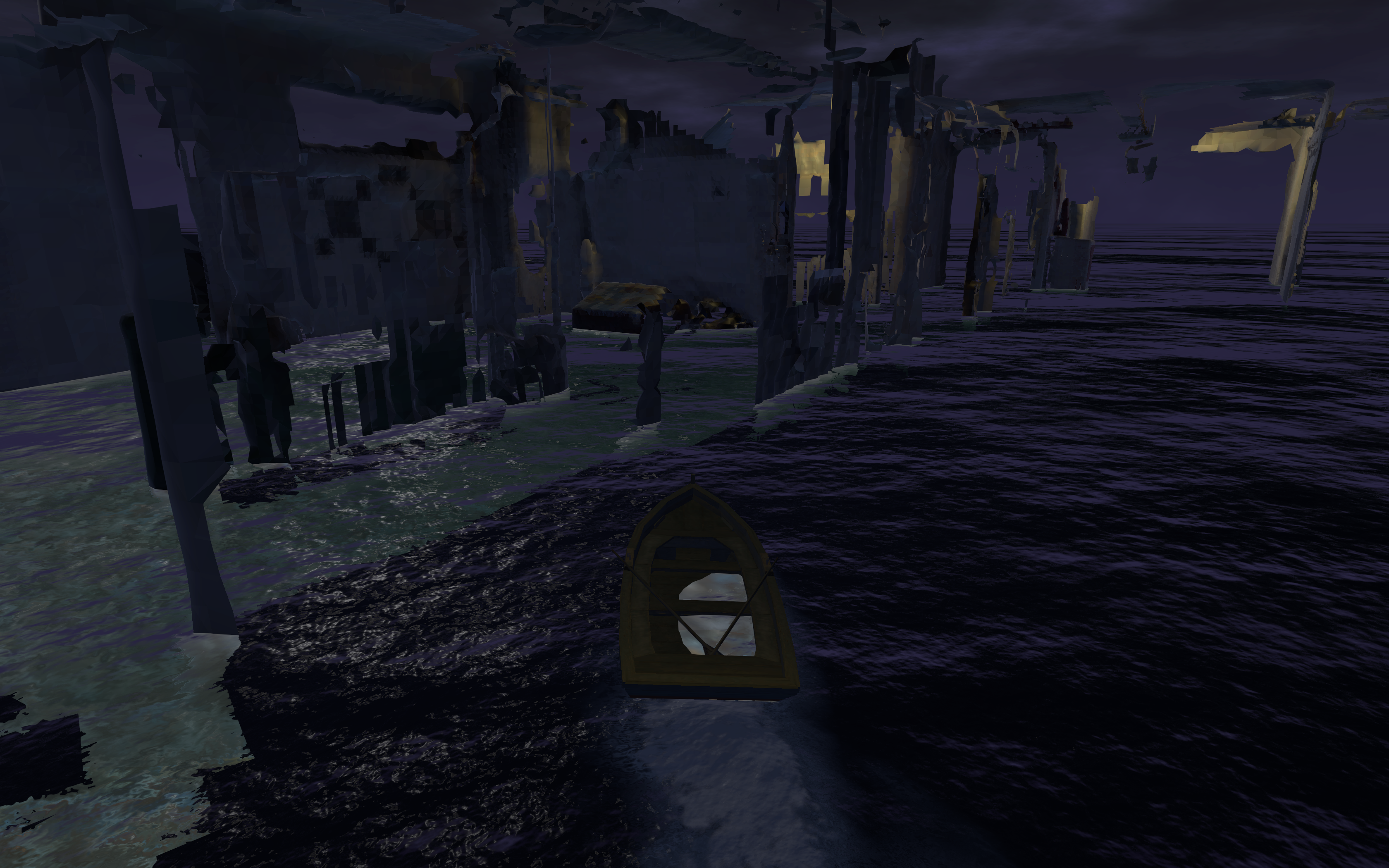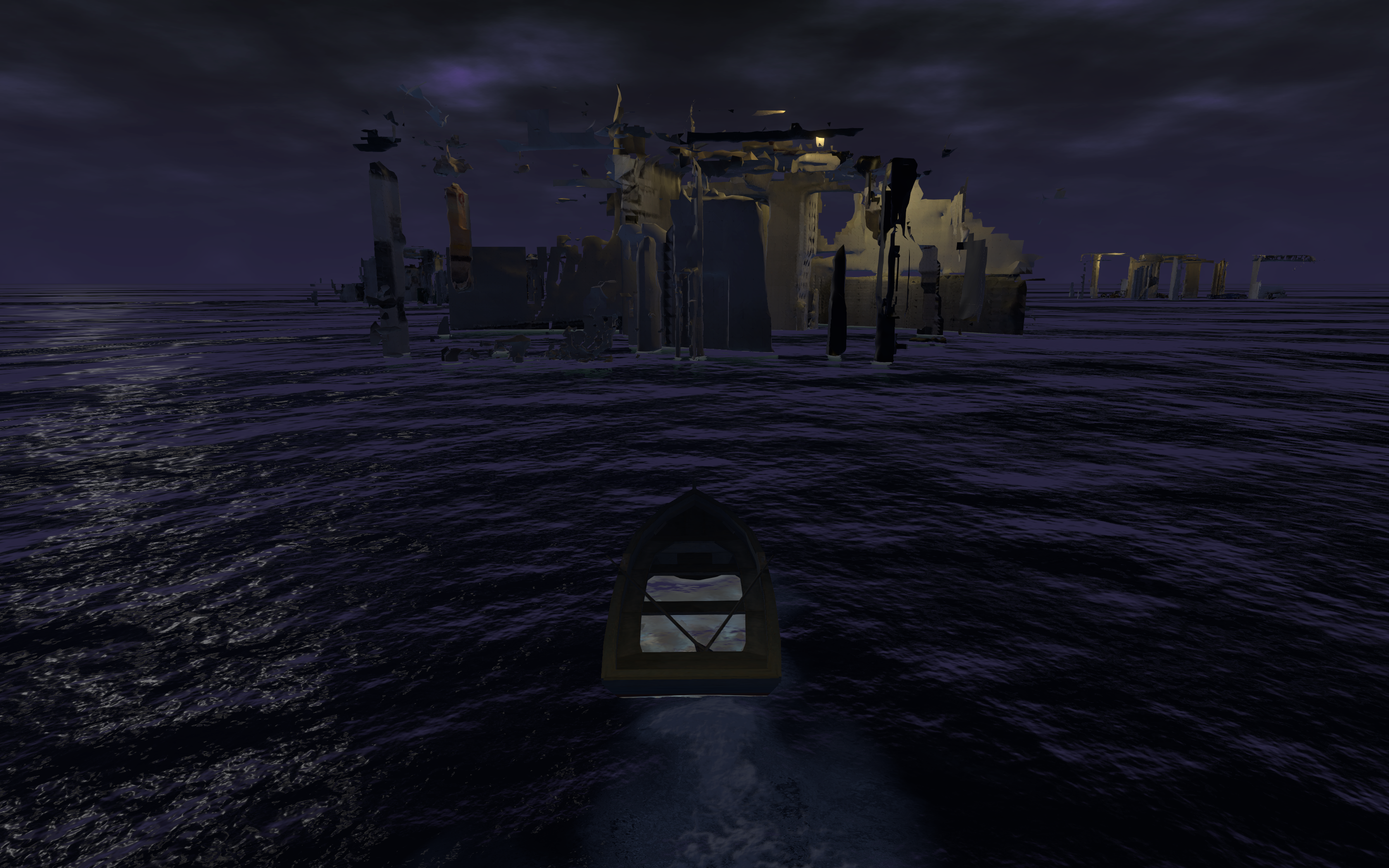Commuting to their home before the sun had risen and commuting back to my home after the sun had set, juggling work and childcare, my sleep-deprived self began imagining this daily journey like a fever dream - like being lost at sea, floating between mysterious watery ruins on a tiny boat.